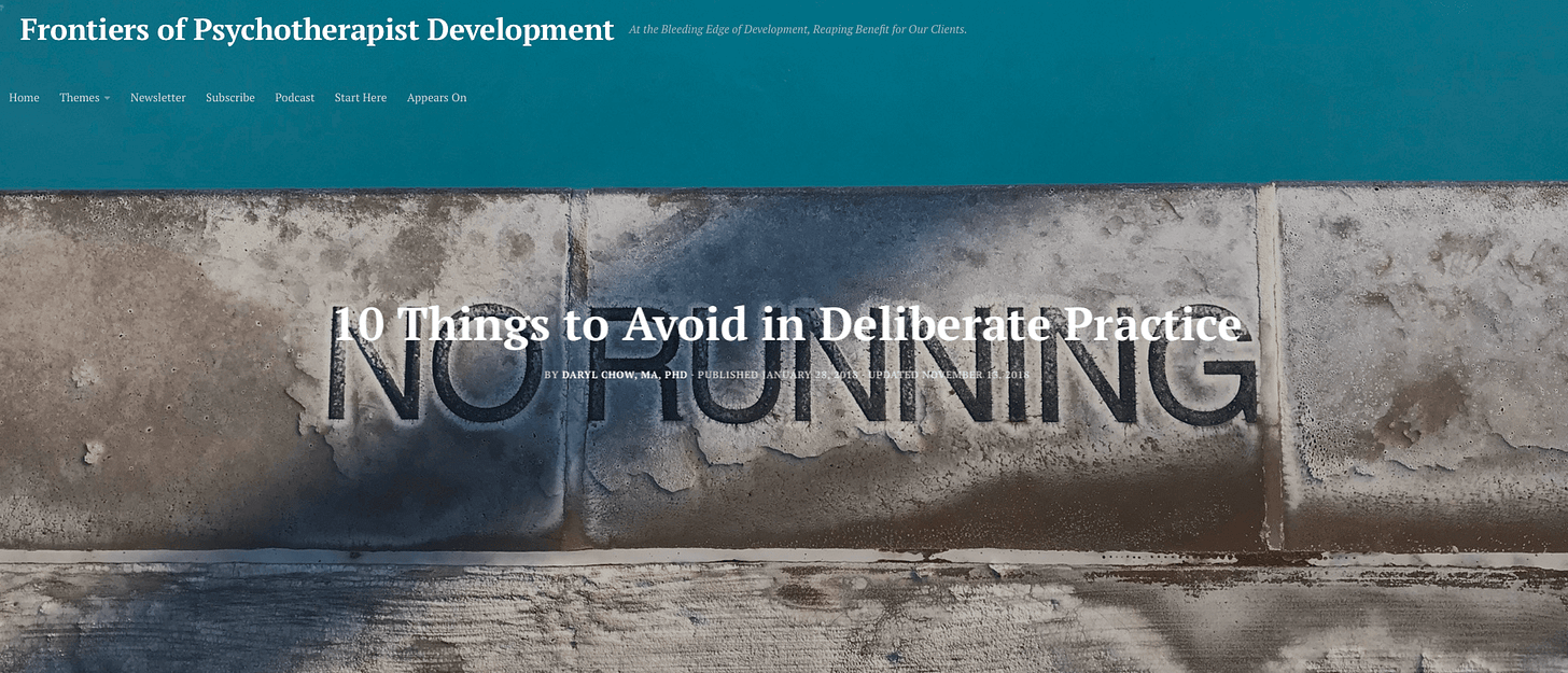 However, I’m not so sure that it makes sense to think about deliberate practice (DP) for specific schools of therapy. Back in Jan 2018, I said that this is one of the things to avoid in DP.