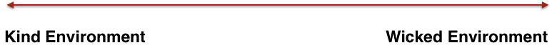 A “Wicked Environment” is where the rules of the context are often unclear, and the feedback loop for the target of learning and the impact on the performance is delayed, inaccurate, or both. Examples of wicked environments include poker, soccer, medicine, and life.